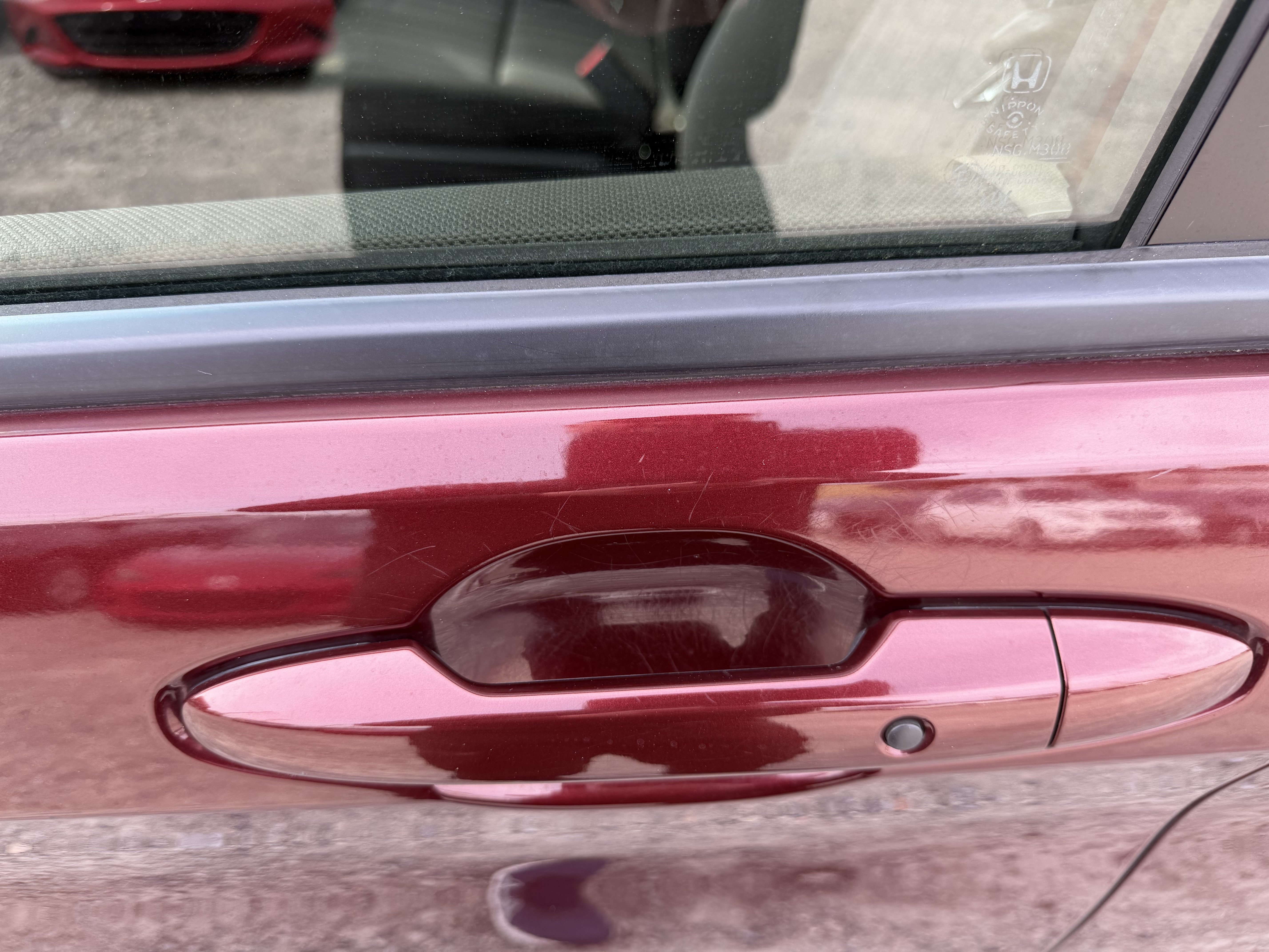 ЛОД 8.02.01, Хонда Фрит, год первой регистрации 2017-й, 7 мест. Следы ремонта на задних внутренних панелях, царапины внутри по салону, нет запасного колеса, сидения продавлены, след от детского кресла, по салону загрязнения, на сидениях пятна, по кузову тонкие царапины, по кузову пятна. На правом переднем крыле следы переустановки, что его снимали и заново устанавливали. Колесные колпаки требуют замены. Повреждения на дверных зеркалах под замену. Пробег 105 493 км. Камера заднего хода, слайд-двери с электроприводом с обеих сторон. Оценка автомобиля R, оценка кузова D, оценка салона C. На схеме отмечены сколы на лобовом стекле. Замена заднего правого крыла. Следы ремонта средней величины на переднем правом крыле, передней правой двери, задней правой двери. Большие царапины на задней левой двери. Остальные отметки это небольшие и средние царапины по кузову, а также есть небольшие вдавленные царапины на левом пороге. Сколы на лобовом стекле.